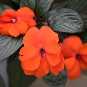 New Guinea impatiens hawkerii 'Super Sonic Orange Ice'