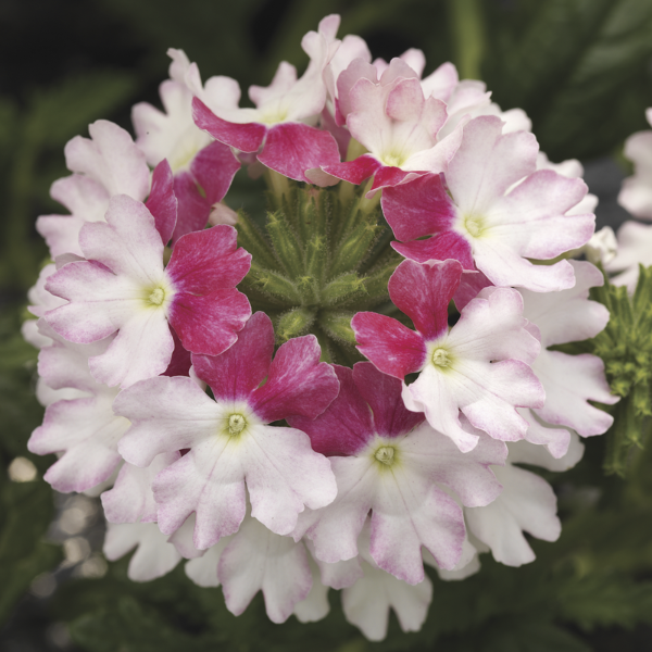 Verbena is commonly featured in hanging baskets, container combinations, rock gardens, or for mass planting in the garden. The taller and fuller varieties go nicely as mixed fillers in the garden. Verbena will continuously bloom all season long and are quite tolerant of drought, heat and humidity. They prefer full sun and moderately fertile, amply drained soil. Too much shade results in leggy plants with sparse flowering. Key features of this variety include mildew resistance, heat, frost, and drought tolerance, and no deadheading required.